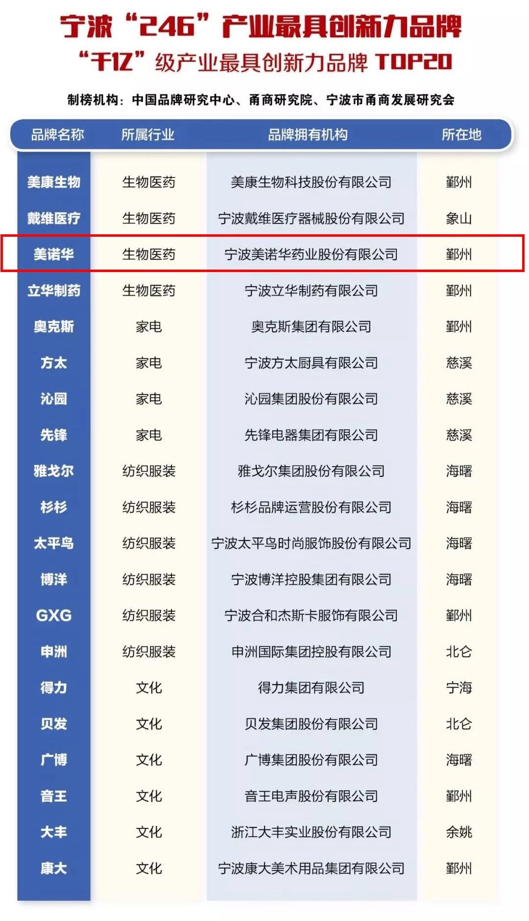 您的位置:首页 > 新闻中心 > 企业新闻近日,由中国品牌研究中心、甬商研究院、宁波市甬商发展研究会权威打造的“宁波品牌界的奥斯卡”——“2019宁波品牌百强榜”火热出炉。威廉体育荣膺宁波“246”产业最具创新力品牌,并跻身“千亿”级产业最具创新力品牌TOP20。